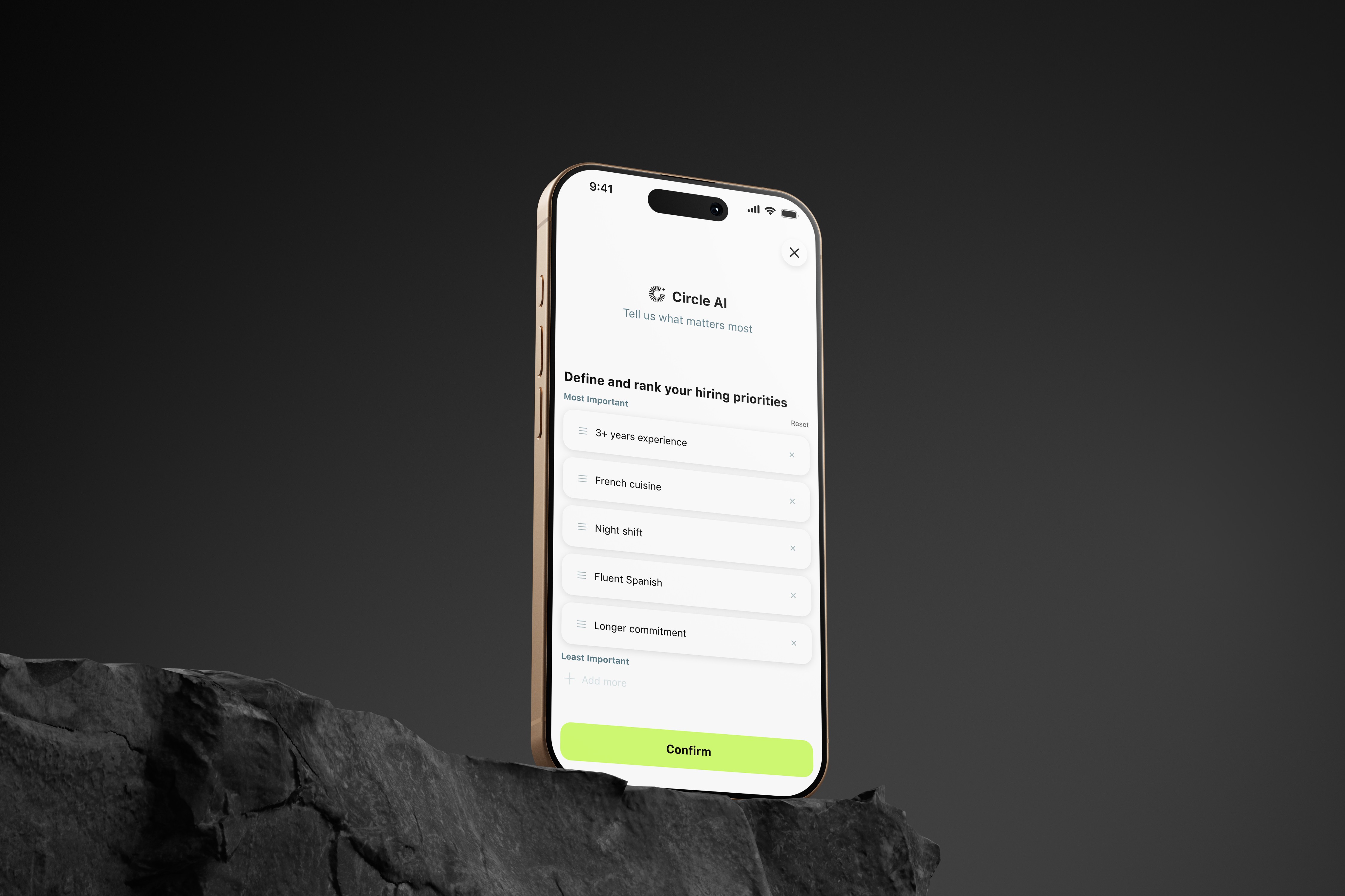 Recruiters can tune ranking criteria directly, reshaping the shortlist in real time. AI adapts instantly, but never locks outcomes.