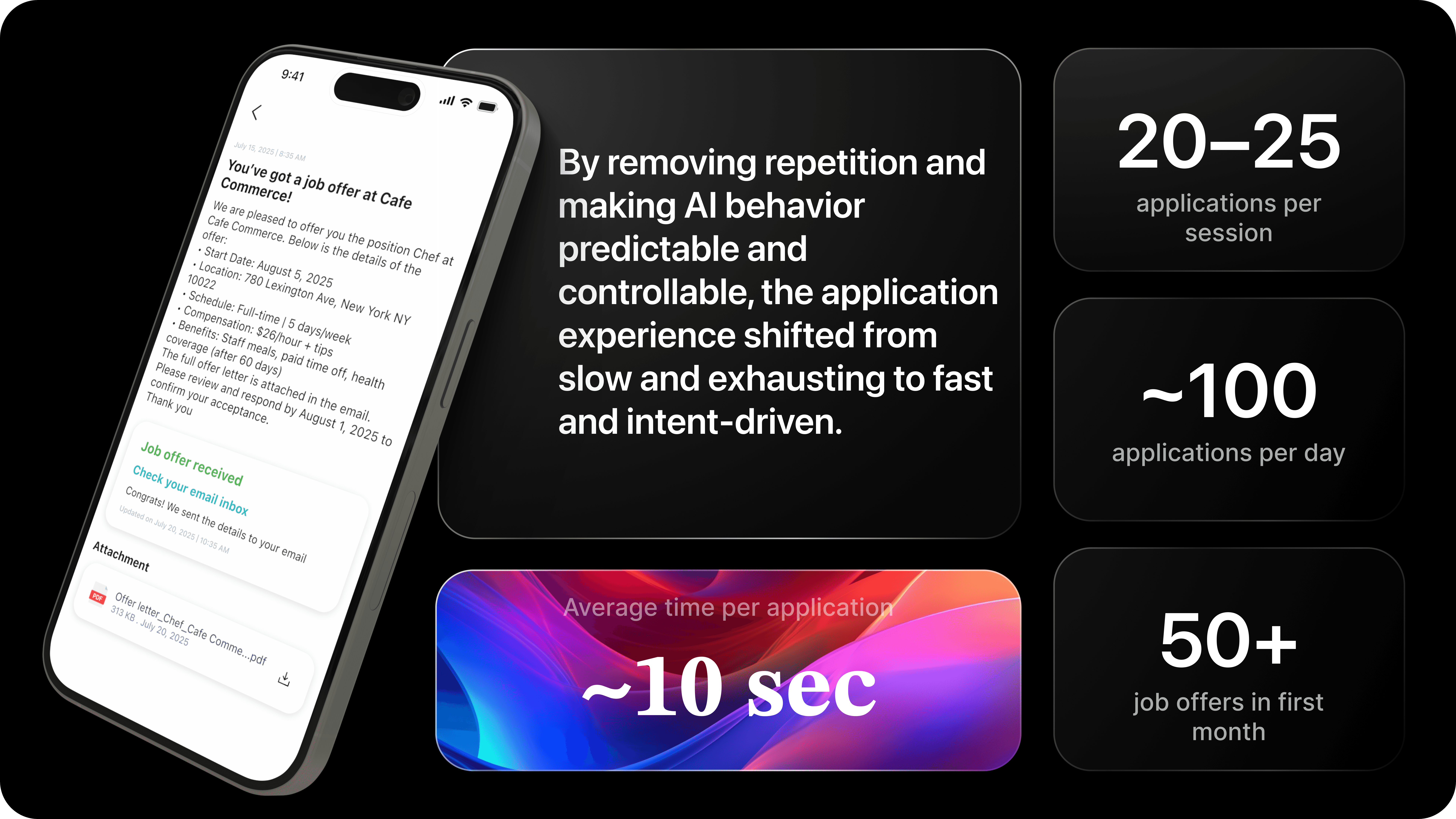 When users apply to multiple jobs, previously captured information and answered questions are automatically reused. The same input is never requested twice.