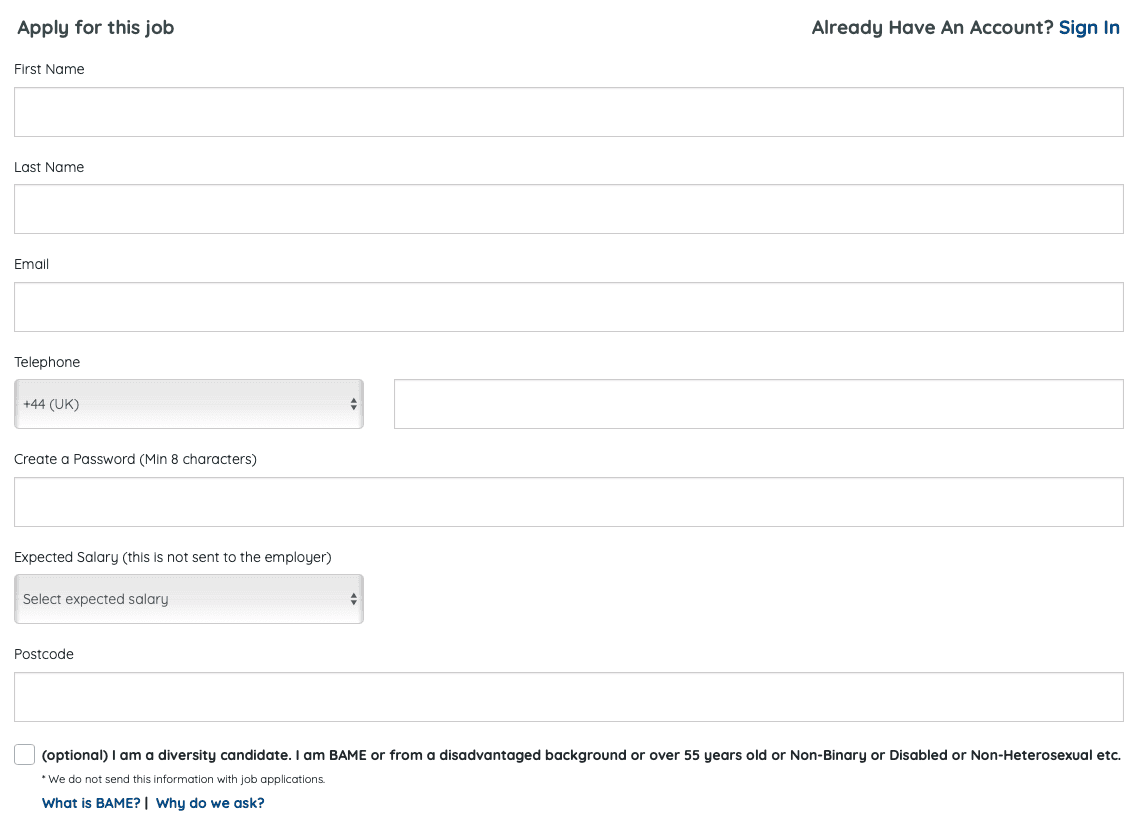 Job search → Job page → Click “Apply” → Redirect to ATS → Create login → Fill profile → Upload résumé → Fill work history → Answer compliance questions → Submit → Wait for email