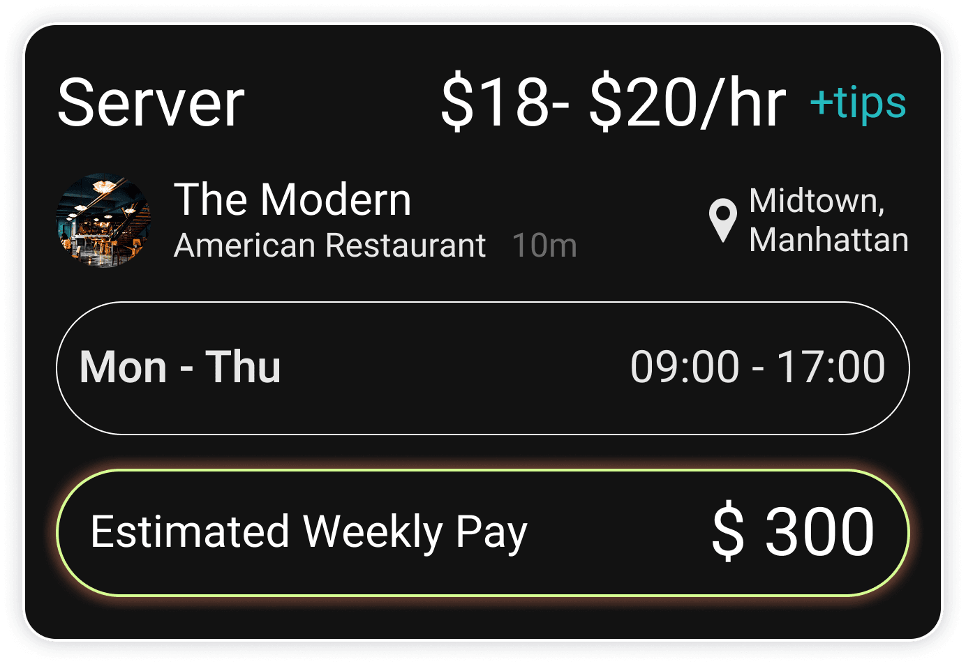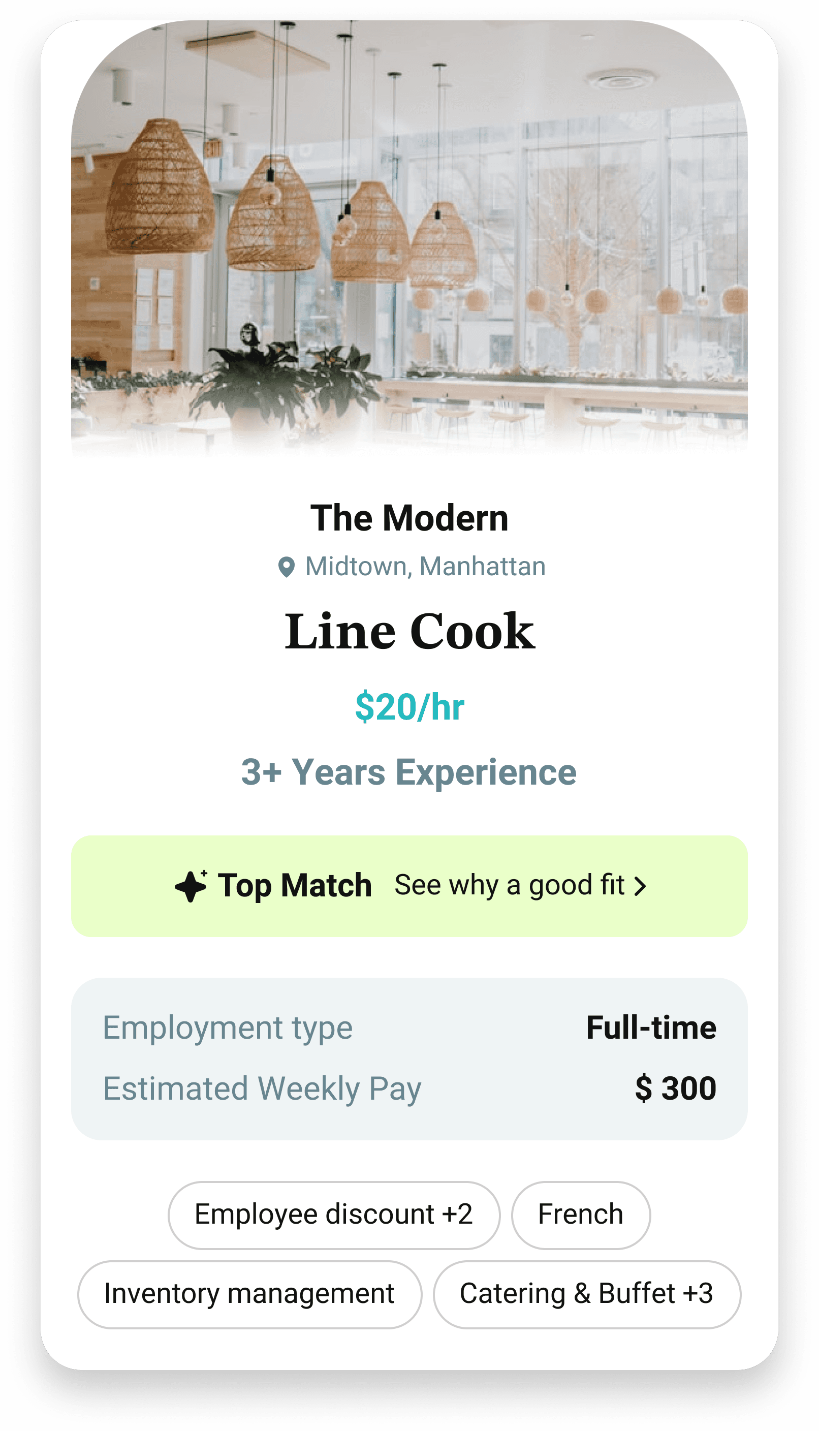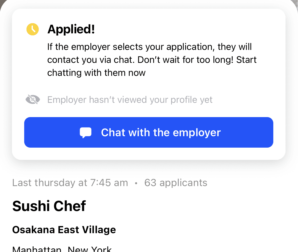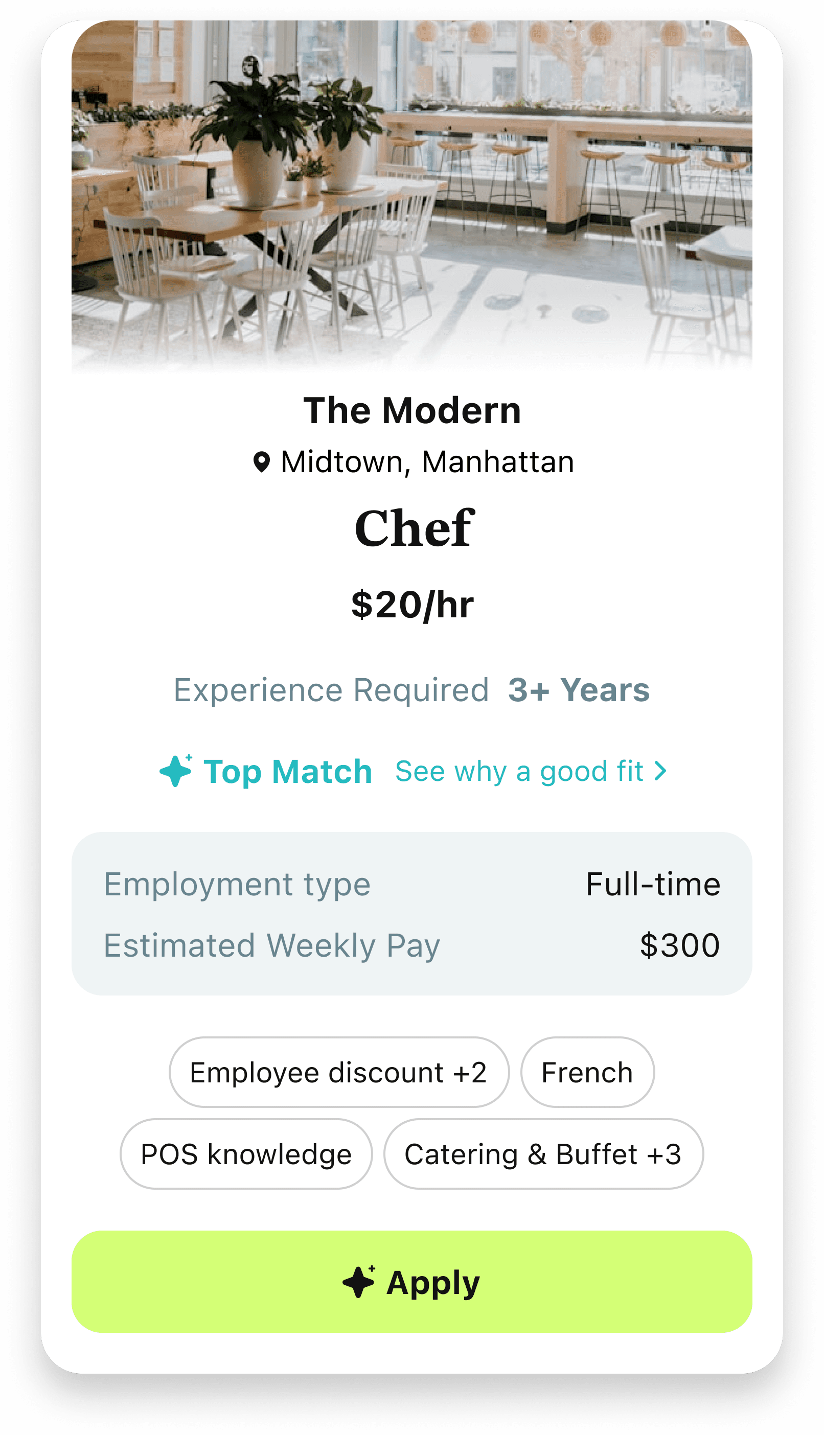 Inspired by Tinder and Bumble, we introduced a swipe-to-apply interaction to match users’ natural behavior.