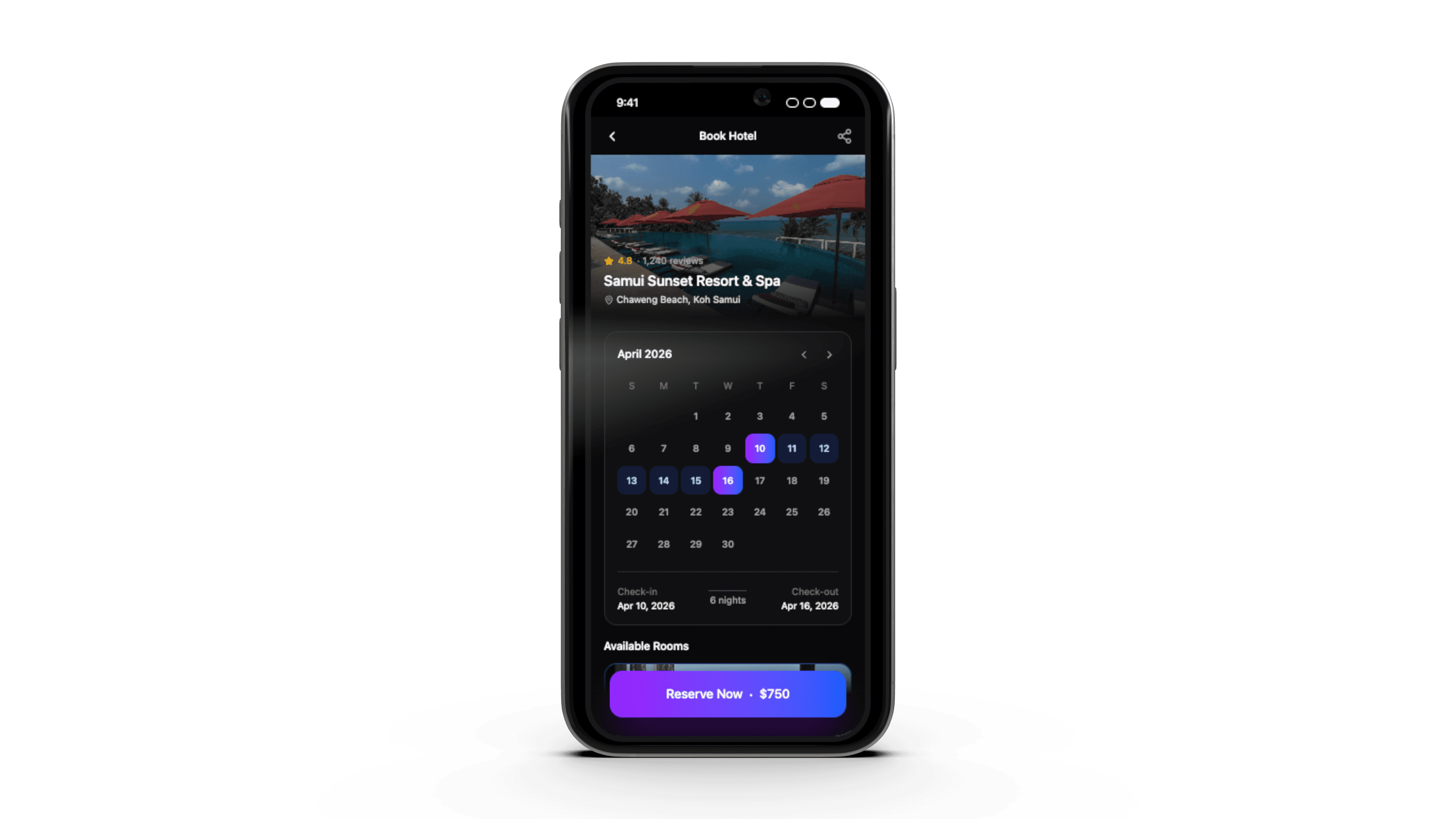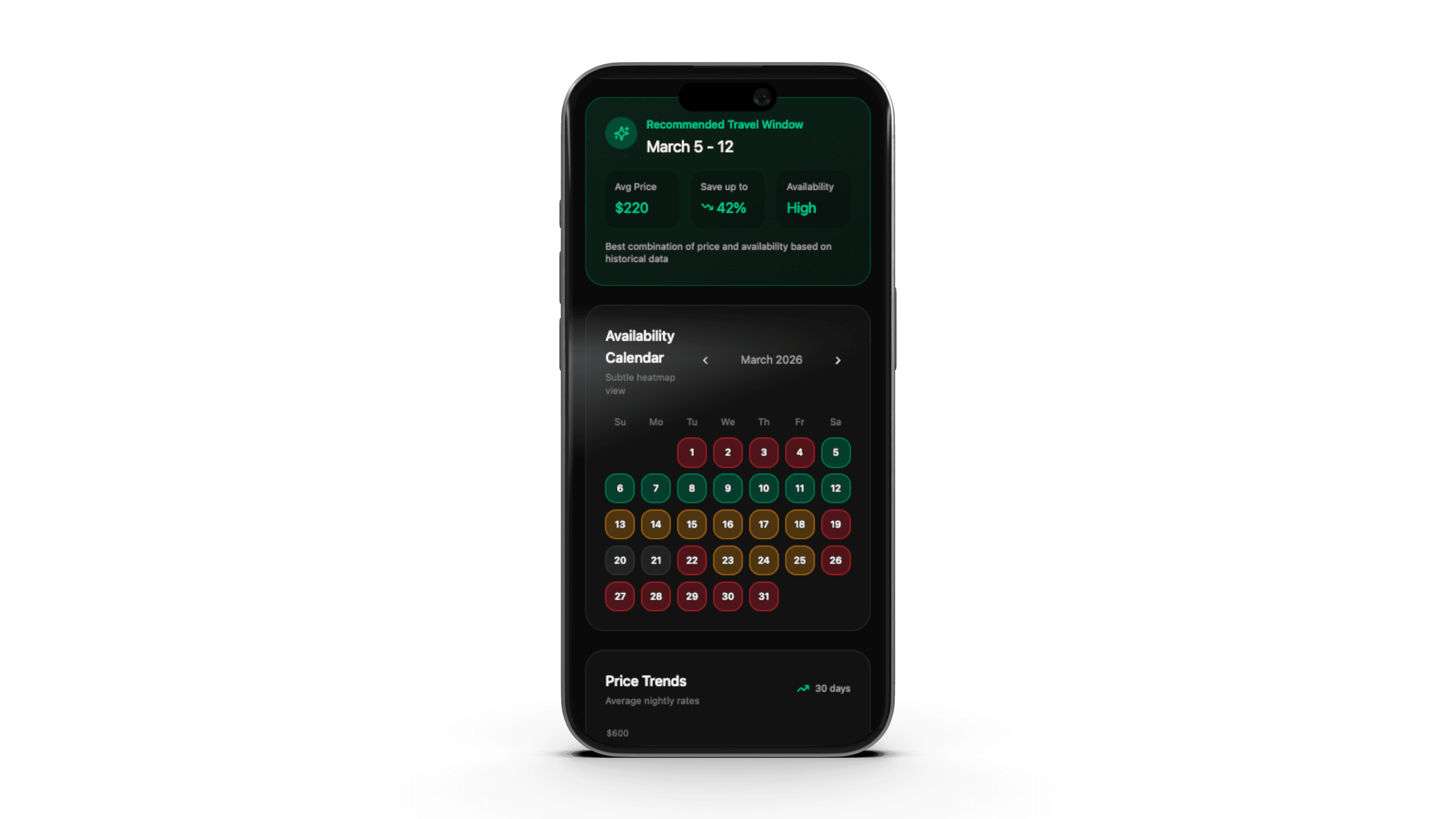 Shows price calendars and nearby available dates.